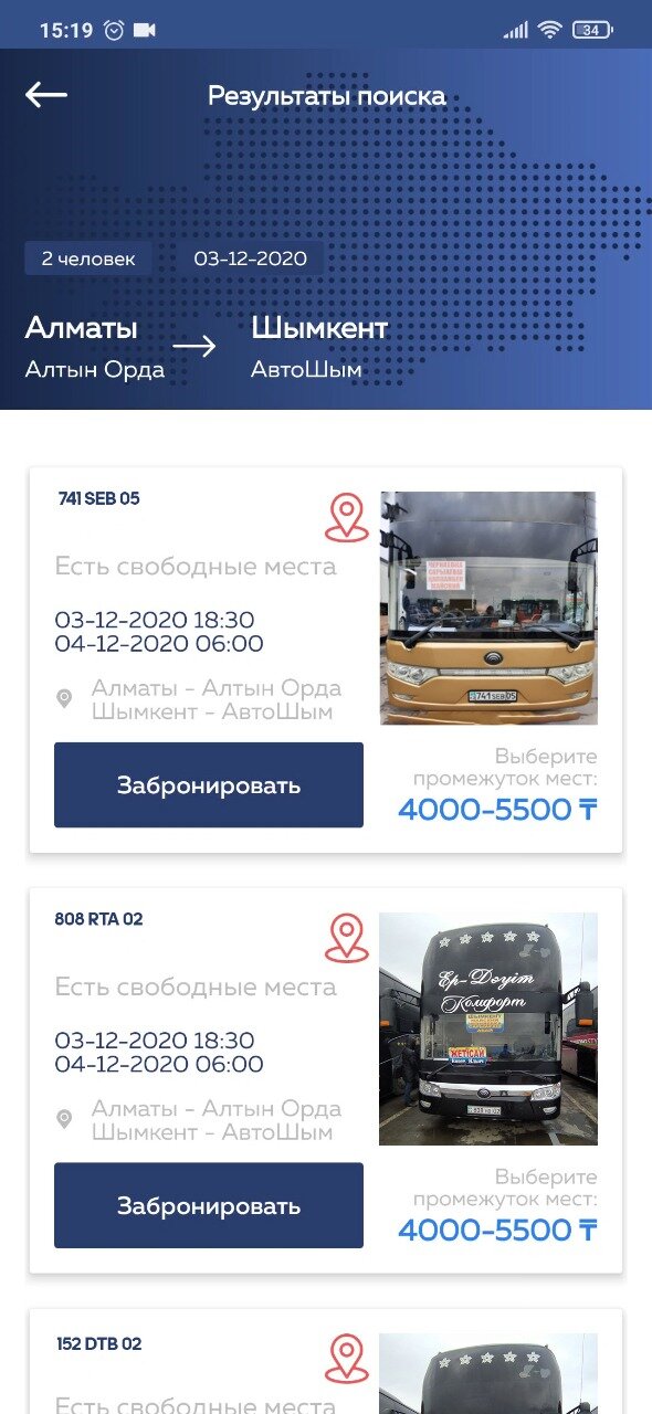 Например Алматы (Алтын Орда) – Шымкент (Бекжан) Дата и время